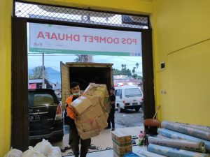 Barang bantuan BI Sumbar dimasukkan ke dalam posko DMC jelang dibagikan kepada warga